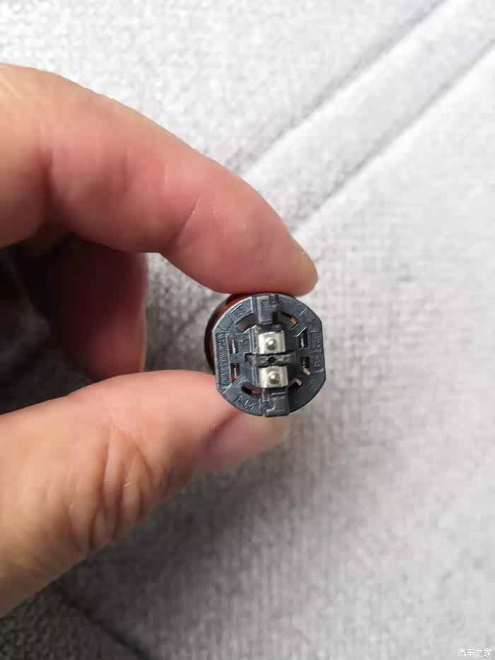 新旧灯泡对比一下,类似圆柱形是原车上的,圆形的是新买的直径大了点,差点塞不进大灯内。