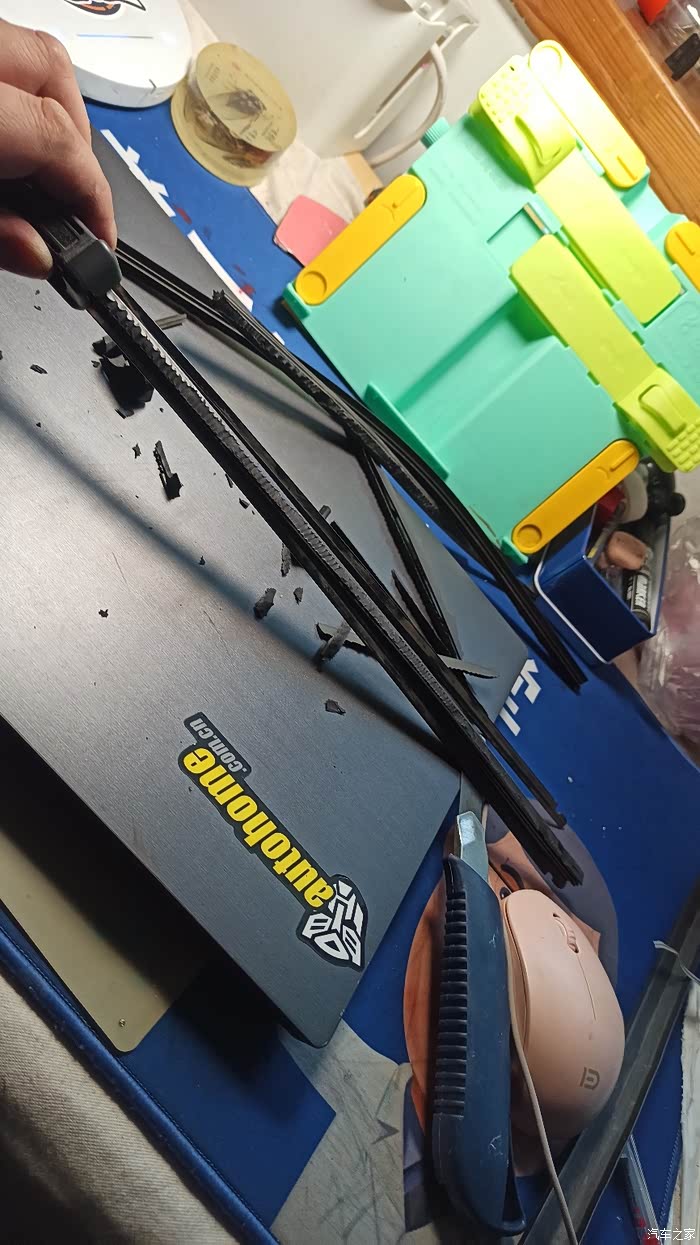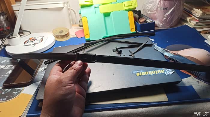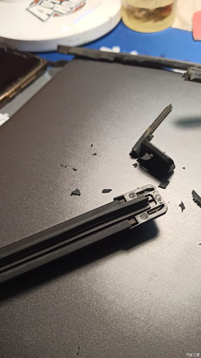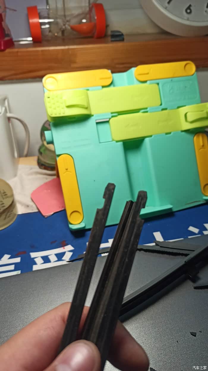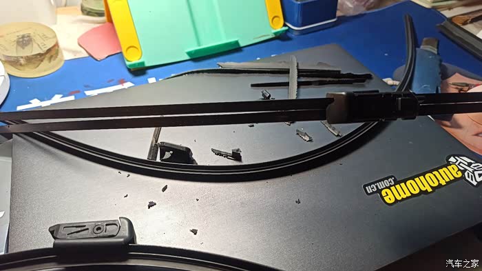 新旧两个完整的雨刮片,为了防止压力不对再次跳动,继续拆拼,其实我也试了下新的片,压力依然不对,