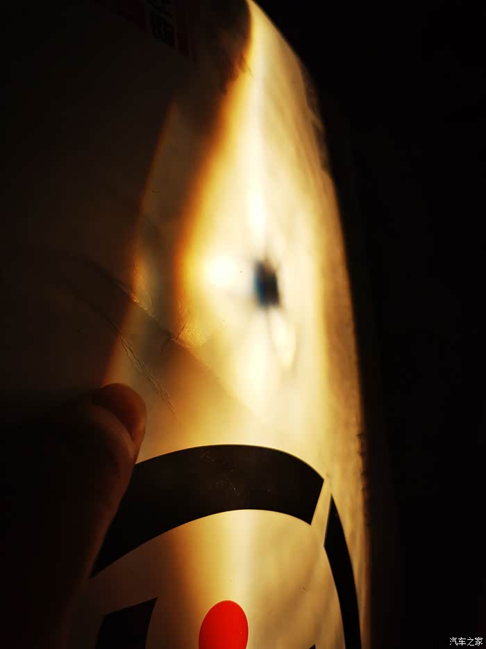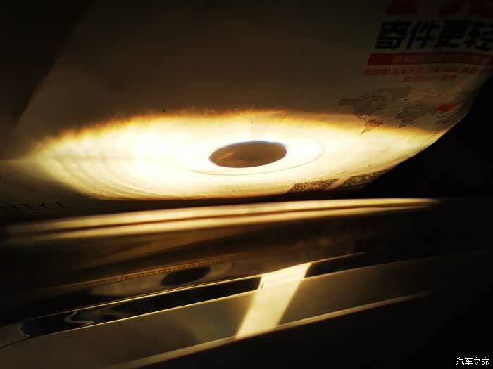 检查方案来了, 点亮近光灯后,那一张白纸贴近大灯,最靠近大灯的时候可以看到一个非常干净完整圆圈黑影,这个是时候就说明透镜和灯泡正常对焦了。