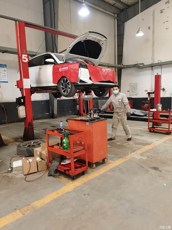 一会的时间车子已经被抬起来了,马上开始保养了