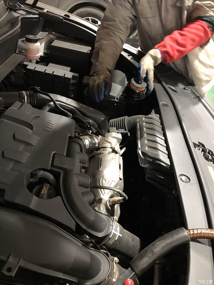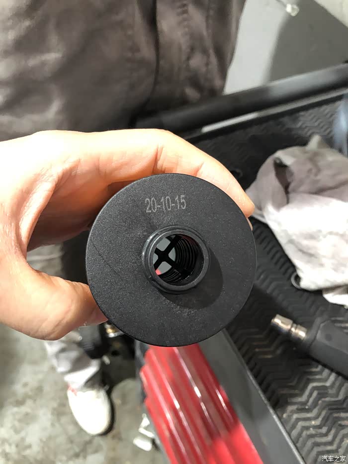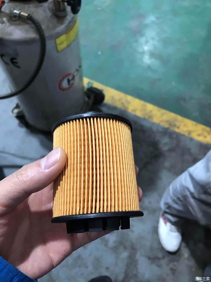 只见修车师傅把机油尺抽出来,插入抽油机细细长长的管子,就开始抽油啦。大约半个小时的功夫,机油就抽完了,接着就是换机油滤芯。师傅摸索着下掉旧的,换上新的,还别说,旧的还真挺脏,已经变黑了。