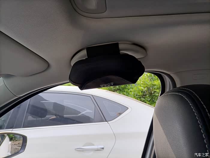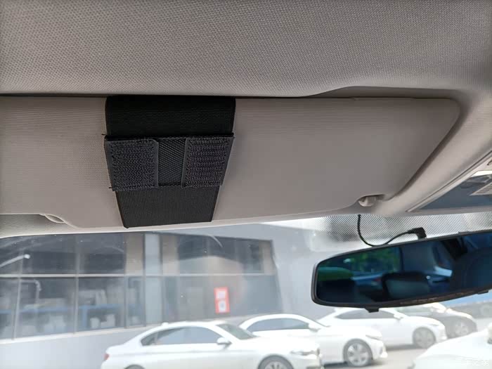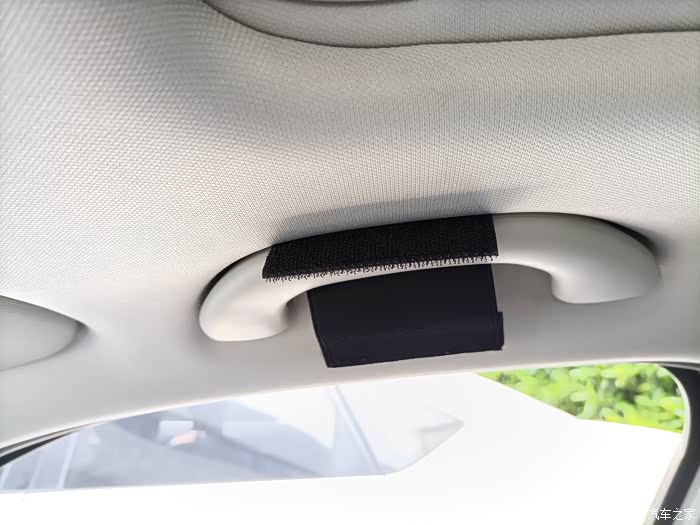 有俩条遮光板的松紧带,一边可以安装一个。拉手也可以安装一个,这样可以很随性的将眼镜盒放置在这几个地方。非常人性化。