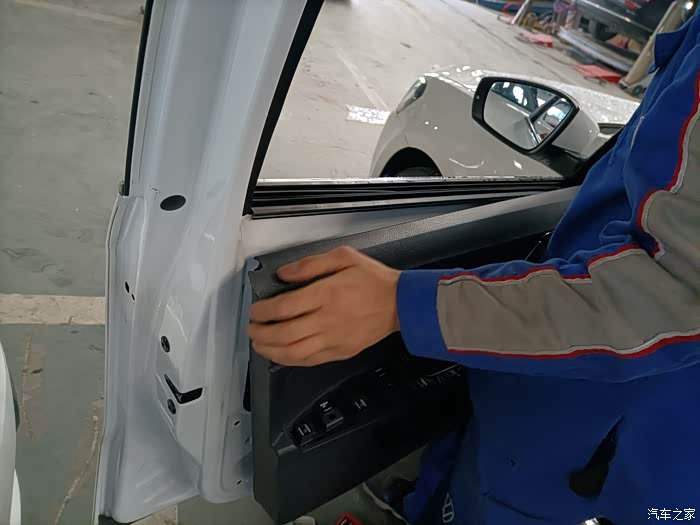 开始拆卸门板。先吧固定螺丝拧下来,然后就是螺丝刀撬,用力撬多少看着有点心疼。先将门板上面的扶手和玻璃控制面板翘起来,拔掉玻璃升降控制按钮的线束。然后就开始往上拉门板顺便外拉门板。就拿下来内部门板了。