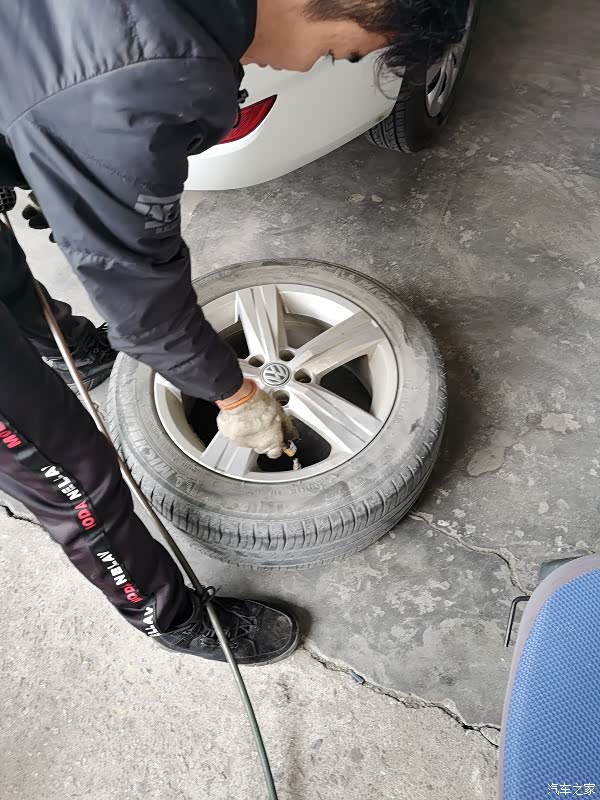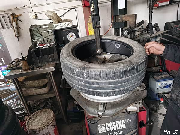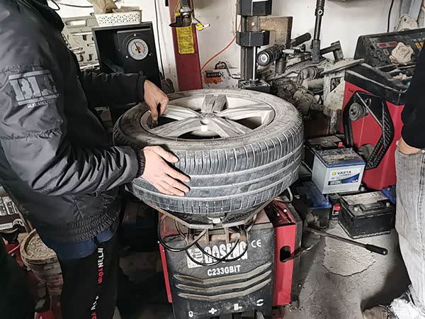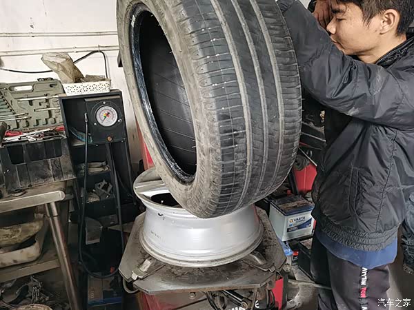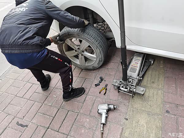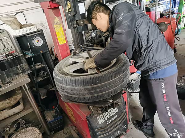 到了店后师傅就用千斤顶帮我拆开轮胎出来看看