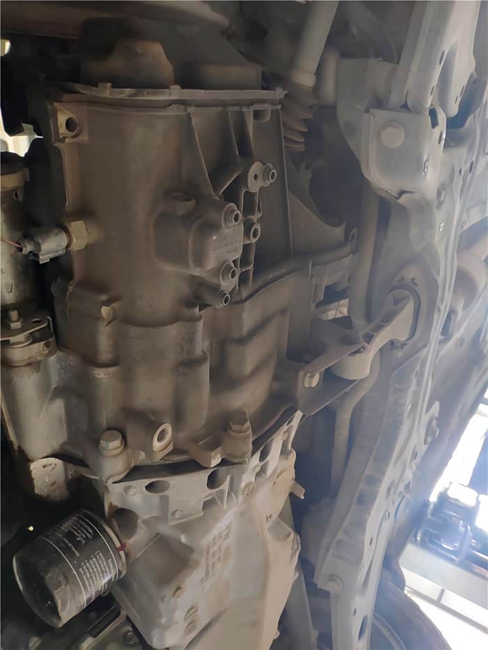 升起来看看底盘,左半部分全是油污,从新车开始就没干净过。