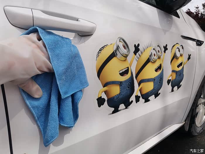 用满满的湿水毛巾把车身擦干净,稍微添加一些洗洁精,防止刮伤车漆。