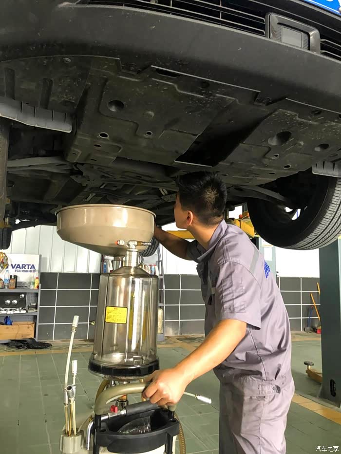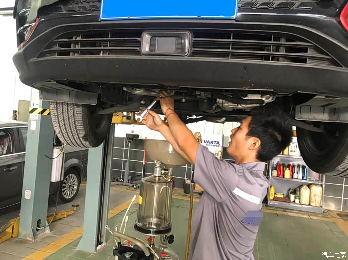做好登记后,技师把爱车驶入保养工位
