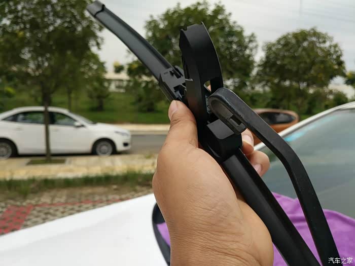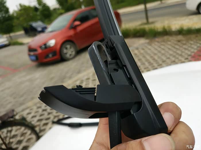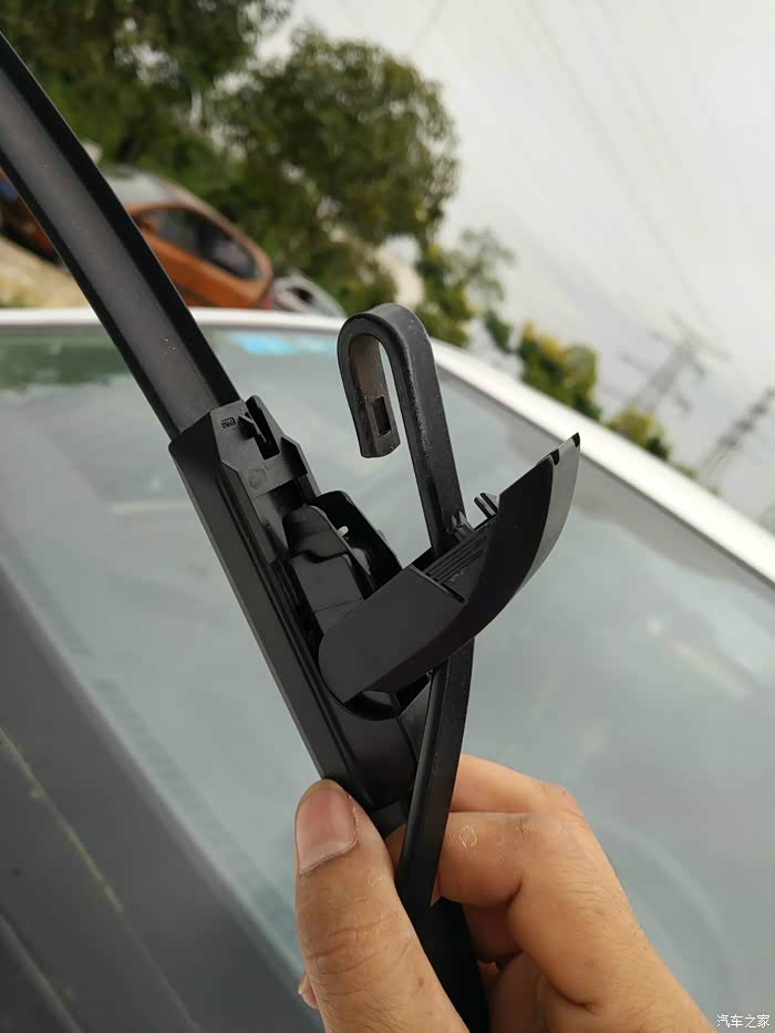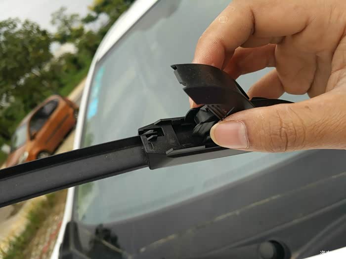 这样就完全把逸动的U型勾雨刷壁留在了车身上,而雨刷器却拿了下来