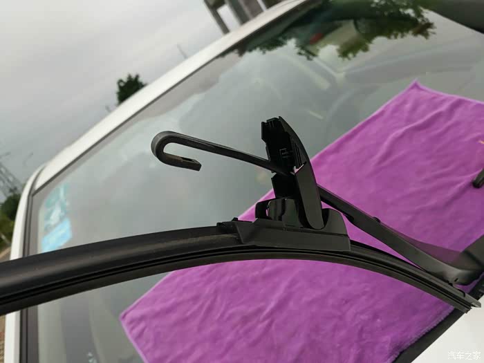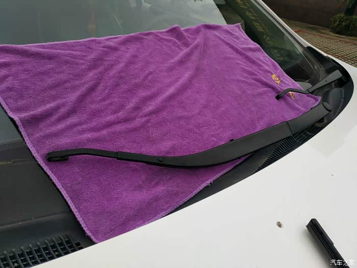 将两个雨刷器拆下来后,留在车身上的U型勾一定要放在前挡上,并垫上毛巾,防止U型勾损坏玻璃
