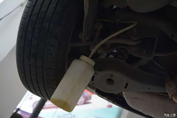 现在换刹车油也用上了新的设备,以前都是一个人上车踩刹车,一个人注入刹车油并排除每个轮子的旧刹车油。