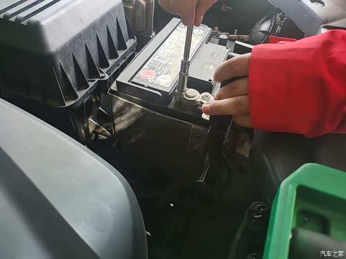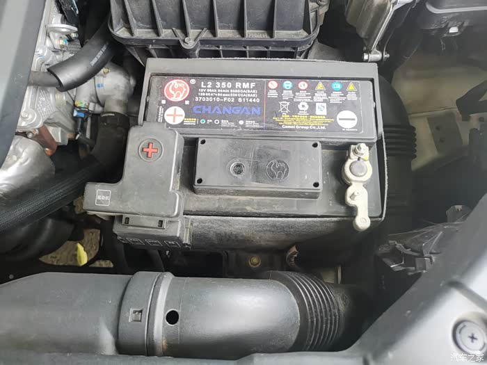 更换前蓄电池,长安的蓄电池的确很不错,平常喜欢在车里听歌,