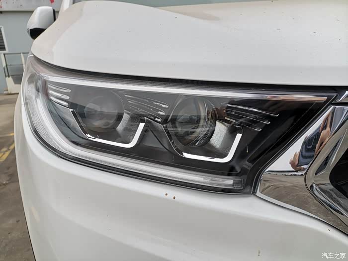 这张图的大灯形状很明显了。w形状那里,叫U形状好像也可以喔。哈哈,是不是真的好亮啊,不知道是什么材质,好厉害的样子。两个LED组成的大灯组看起来炯炯有神。LED嘛大家都知道亮度比较高,对于经常夜晚出行的车主很是友好了。老实说卤素灯晚上是真看不清啊,有条件的还是建议买有led大灯的车。