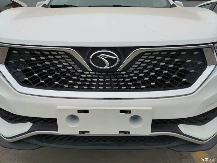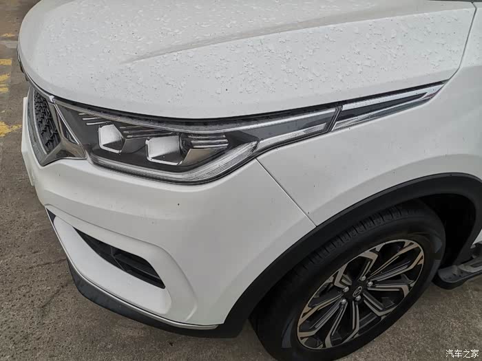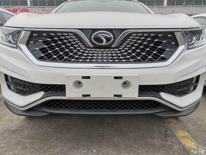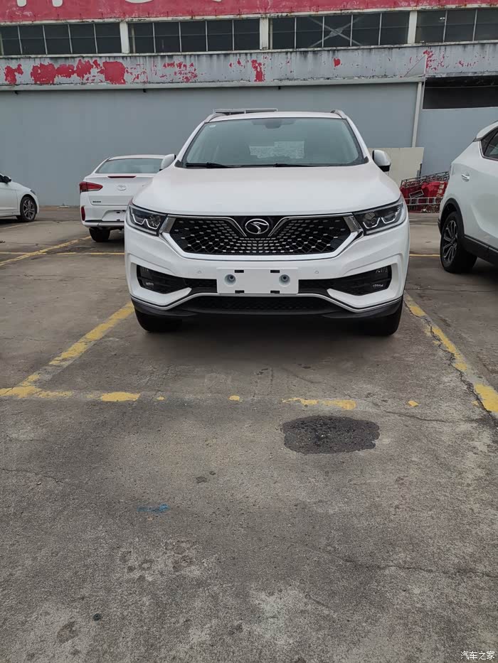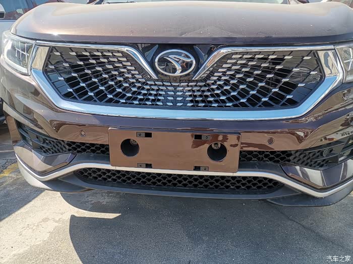 这车是去停车场拍的,停车场放了几十台车,店里在装修。所以全部都有一层薄薄的灰尘,有一种灰蒙蒙的感觉。首先这个是一个整车正脸照片,第一眼看起来这个车尺寸还是挺大的。听店里的工作人员说是1.72米高1.9