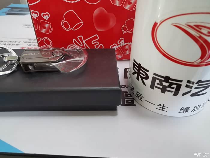去试驾得的小礼物,水杯一般般。钥匙扣挺好玩的,有点像指尖陀螺能一直转的,照片就能看出一点