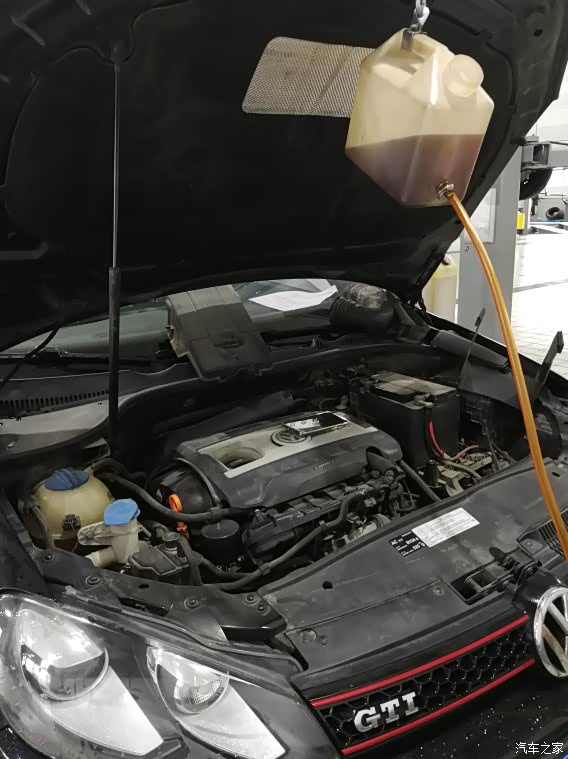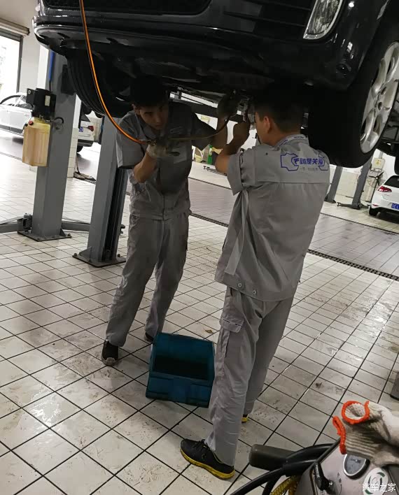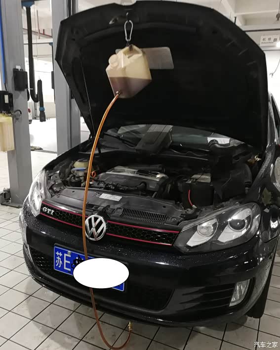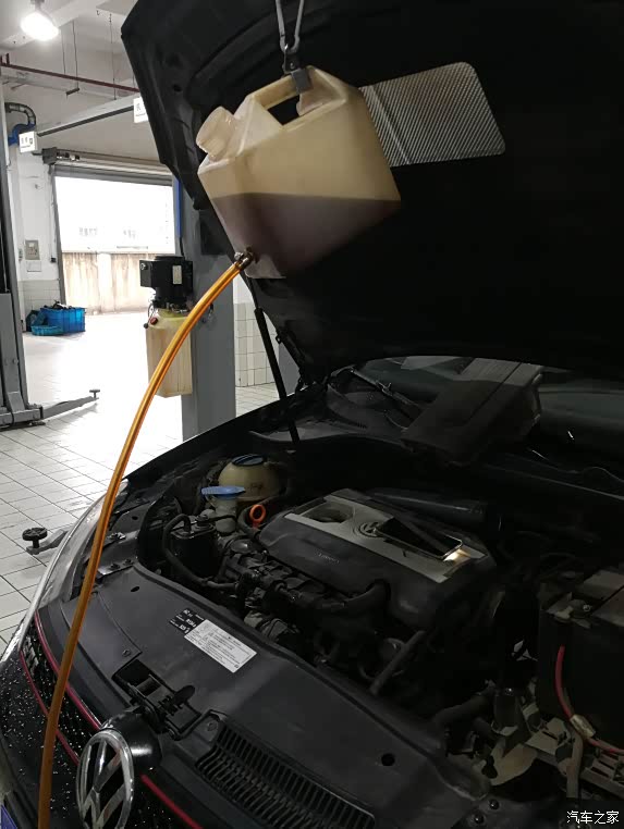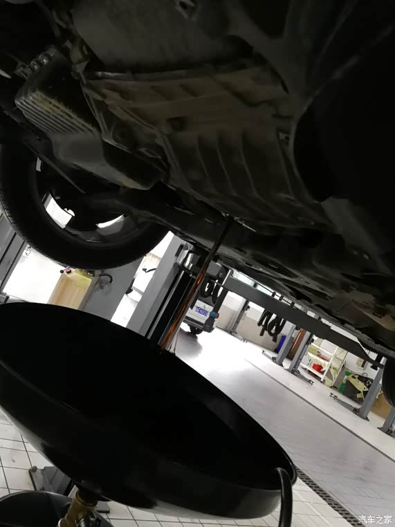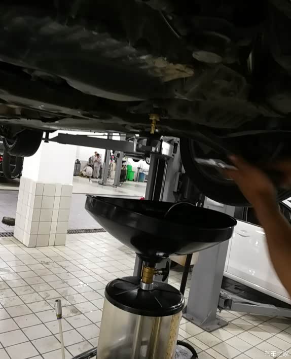 办好会员卡,进车间查看,技师已经在放油了,貌似油不是特别黑,可能跟机油不一样,用久了也不会很黑
