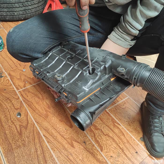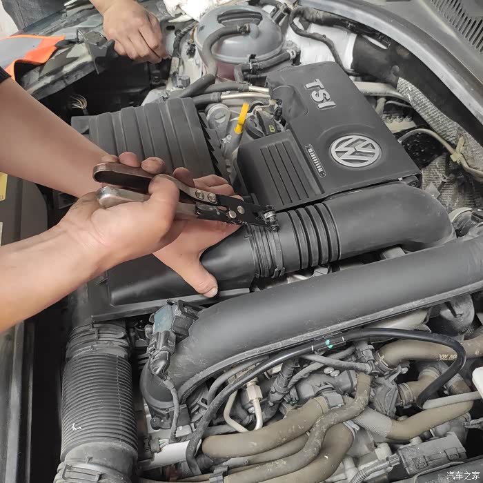 进气管道拆下来,要把里面的空气滤芯拿出来。