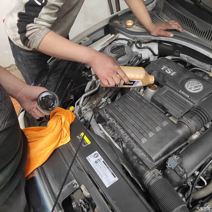 加注机油,看来这个还是要专业的好,如果是我倒的话肯定会流很多在外面。