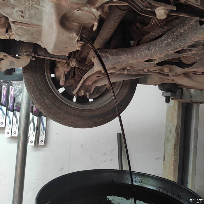 师傅让我站远一点,因为这个机油溅到身上会很烫,而且不容易清洗。看师傅很麻溜的就把机油放下来了。