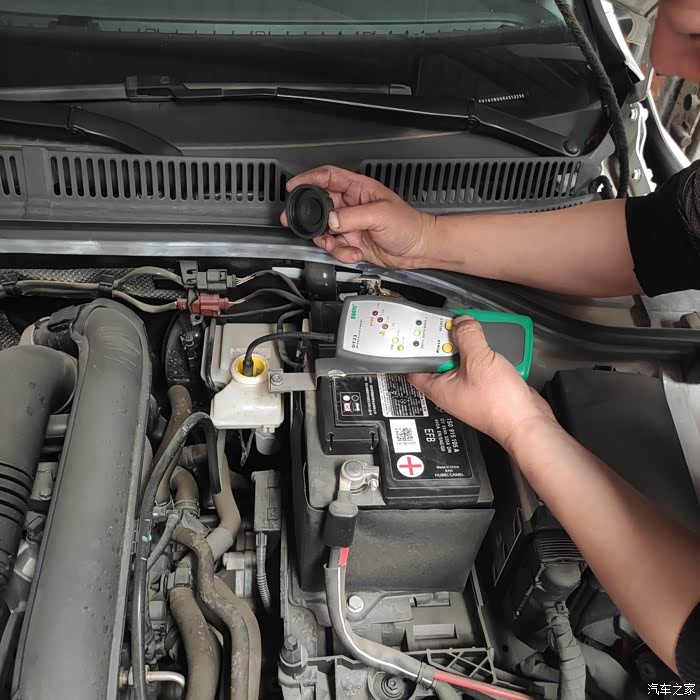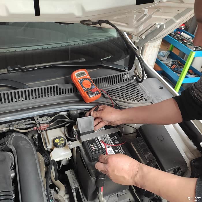 检查电瓶电压,听师傅说本来是有专门检测电瓶电压的,但那个东西找不到只能换万用表,没关系,只要能确保电瓶是好的就可以。