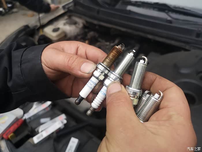 师傅拿出火花塞给我对比,让我更加直观的看到火花塞的使用情况!