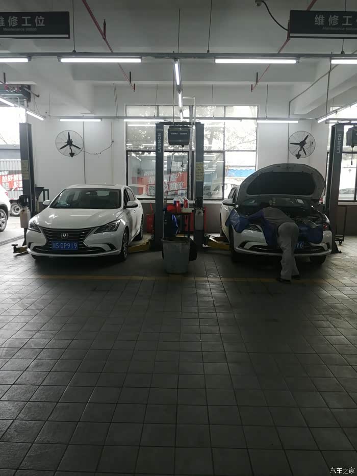 感谢保养师傅耐心,细心的安装中;旁边也是保养的车友,为他们点赞