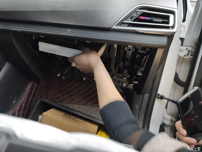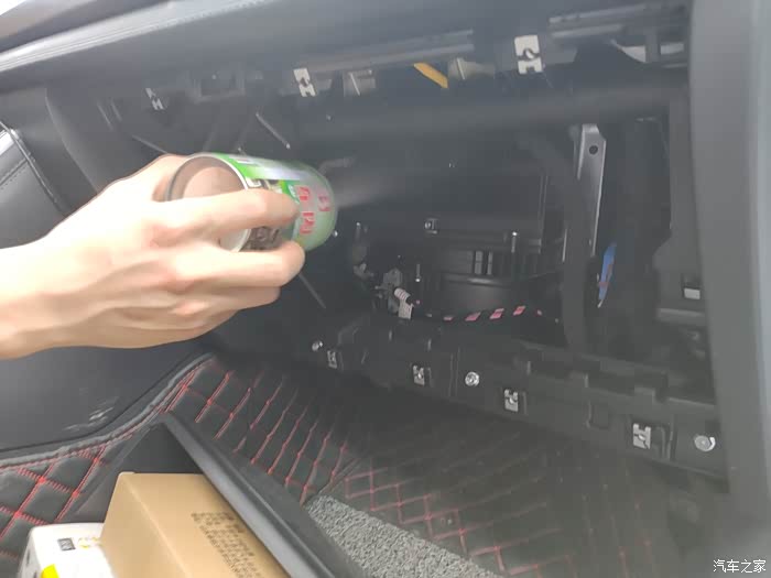 副驾驶前面的储物箱就即可螺丝拆开,还有一个塑料的插销,取下来就可以拆下来了