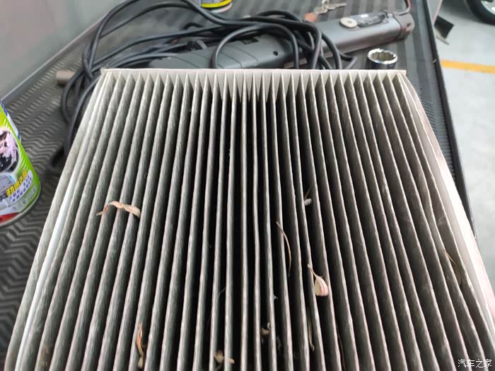 旧的空调滤芯已经脏了,有些树叶了都,该换了