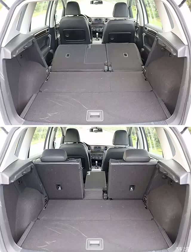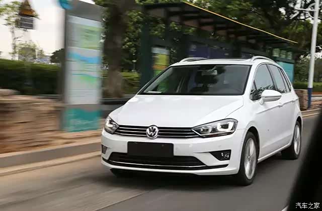 眼前这款全新高尔夫嘉旅,从车身尺寸方面来看,凭借4348mmX1807mmX1574mm的长宽高及2680mm的轴距长度,足以比目前全新高尔夫大一圈,因而空间实用性方面自然也更强。但从车头前脸设计来看,全新嘉旅依旧保持大众家族式前脸设计,横贯前格栅及X状造型等经典元素都已保留。前大灯采用氙气大灯并配有AFS大灯随动转向及自动清洗功能,里面还带有U型LED日间行车灯。