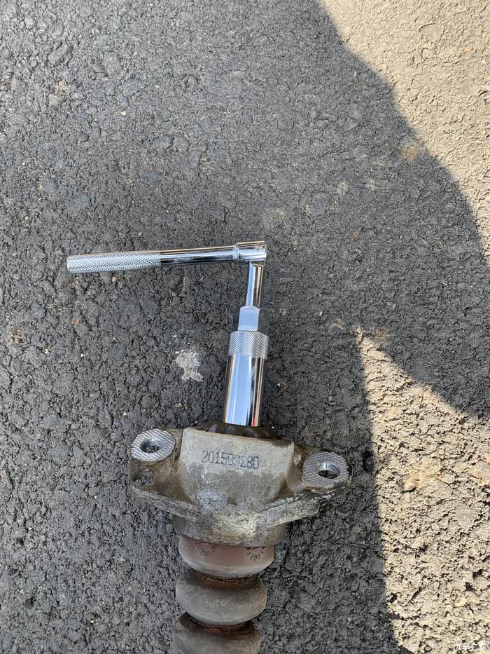 这是上端的两枚16#的螺丝,需要用16的长套筒+辅助管逆时针用力拧松(拧松前可先喷点螺丝松动剂)