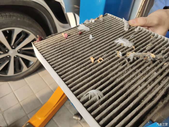 取出的旧空气滤芯,真是太脏了。