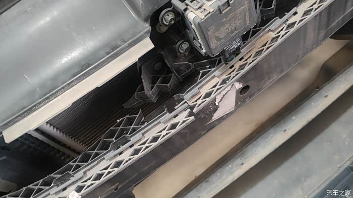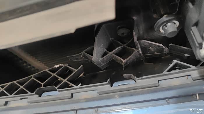 拆下前杠后发现除了外观外,内部防撞泡沫断裂、中网支架断裂、下中网断裂一小段、下中网亮条磕碰。