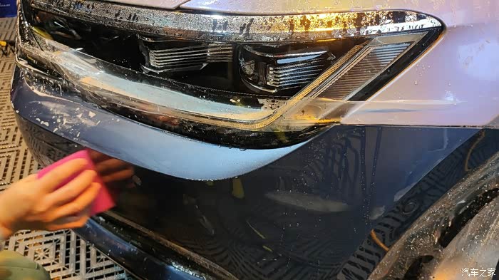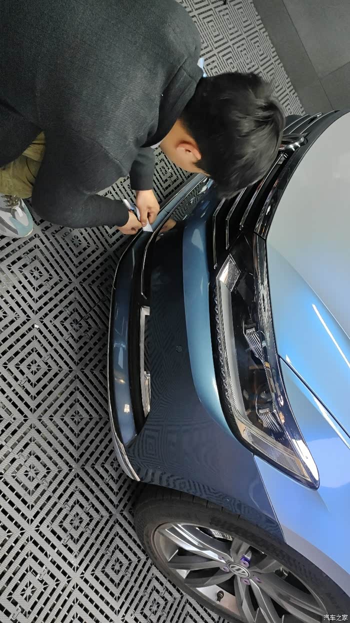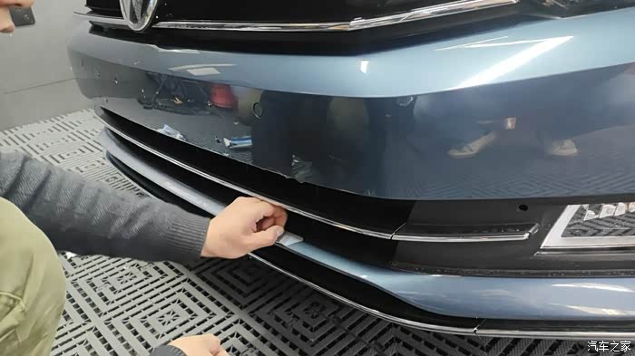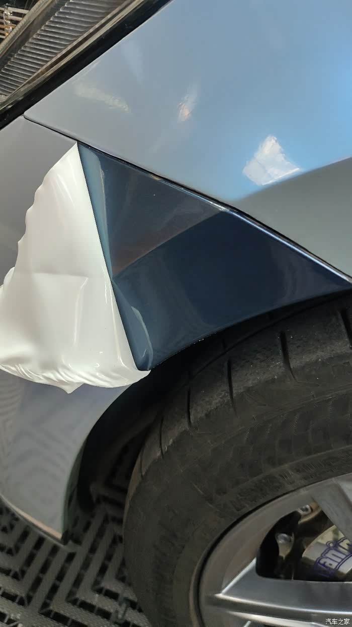 下中网、泡沫、牌照架、亮条等配件期间顺便把车衣和改色膜去做了定损。全部维修完后立马去了朋友店里撕膜贴膜。