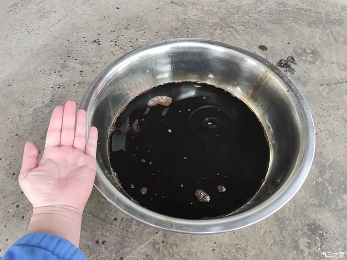 记得加进去的机油是金黄的,这次保养延迟了两个月,是黑色的