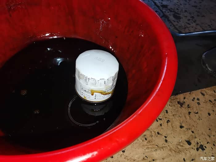 5.机油放干后,开始拆机滤,机滤拆下来之后还会流出来不少机油,目测有将近1升的量