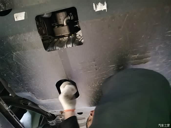2.福克斯的底盘放油操作很便捷,4s店给配的护板也预留出来了放油窗口,直接无脑拧放油螺丝和机滤即可