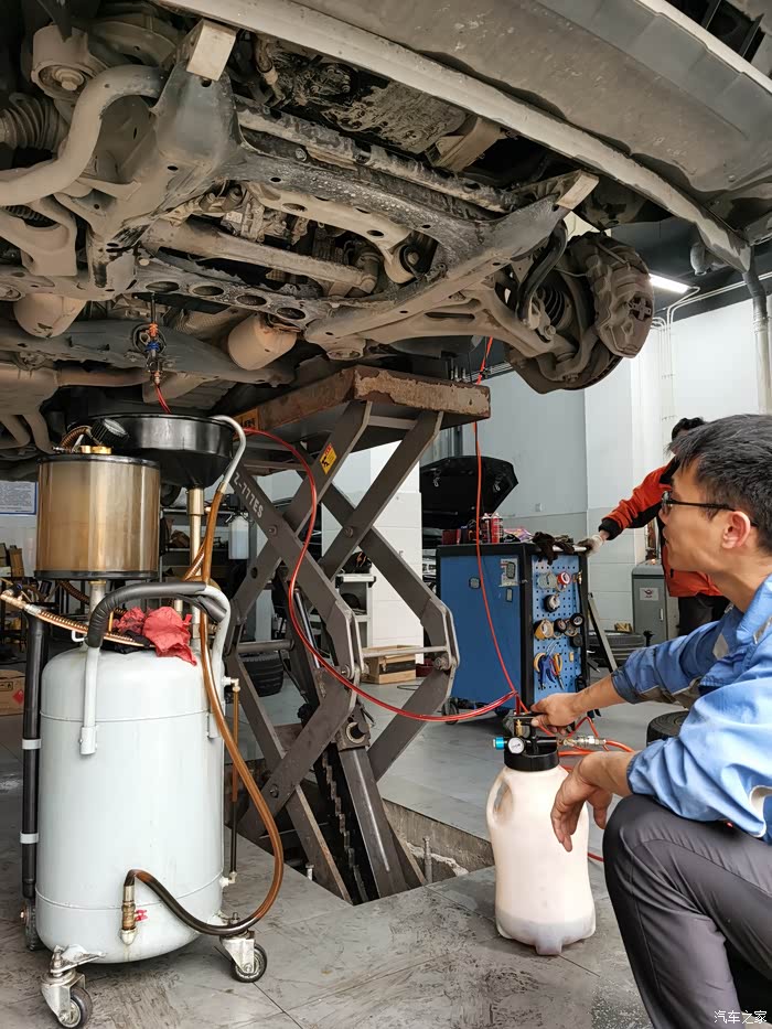 开始更换变速箱油。