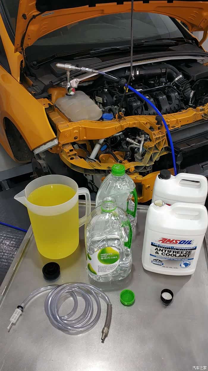 安索丙二醇防冻液,按7:3兑蒸馏水,原车冷却系统抽真空,彻底排空防冻液。