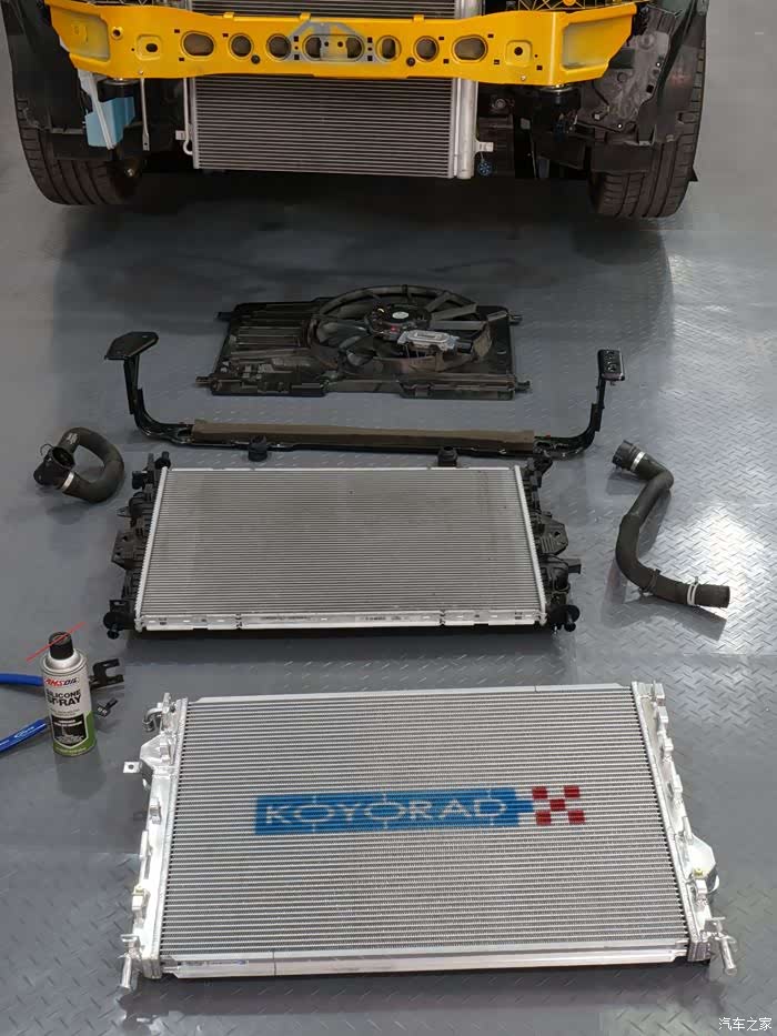 福克斯ST原厂激烈驾驶水温很容易高,再加上原厂水箱两边压接位置老化渗漏的问题普遍比较多,看到日本koyorad推出了ST专用的原装位水箱,果断订货。