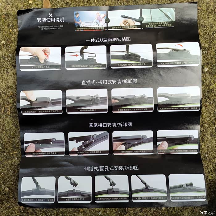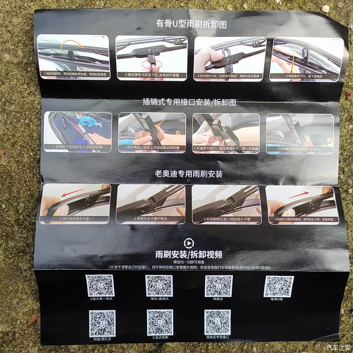 看到没,原车的有骨雨刮,是U型的,按说明书拆解
