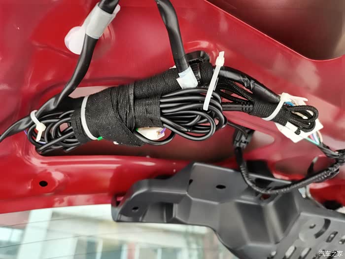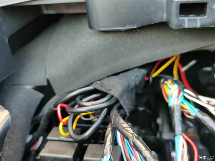 长的传输线捆起来扎好!我既用了绒布胶布又用了扎带!原车这个位置也是绒布胶布,我一看,这不一样一样的么!