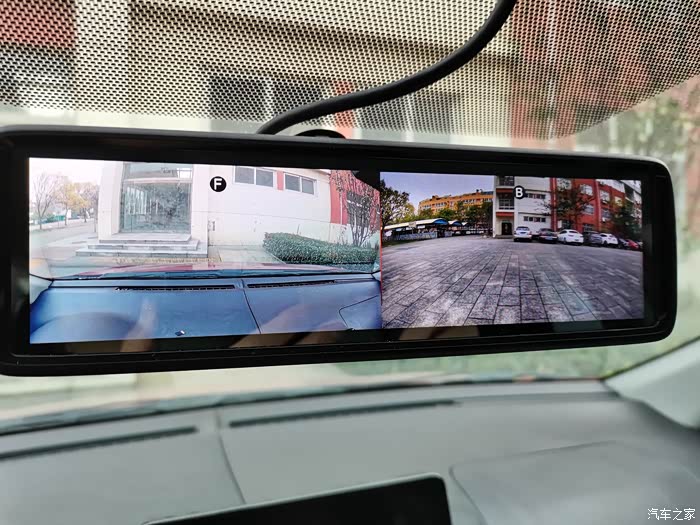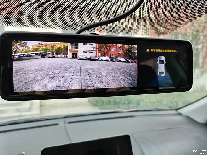 这应该是平时启动后的样子!流媒体后视镜,要的就是后面这个大视野!如果觉得亮,可以调低亮度,如果不想看,可以按一下中间下面的按钮关闭屏幕,点一下屏幕就会唤醒!这后视镜白天会很爽!后面清晰的很!