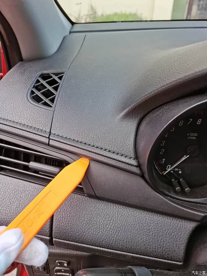 拆下中控空调出风口外框后需要再拆下仪表盘后盖板,大胡子致炫的拆法我再我前面记录仪帖子里有介绍,致炫X的中控外框可是不如大胡子好拆!