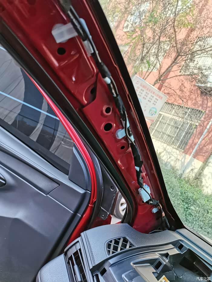 左侧A柱内部,记录仪的线绑在上面,不碍事!