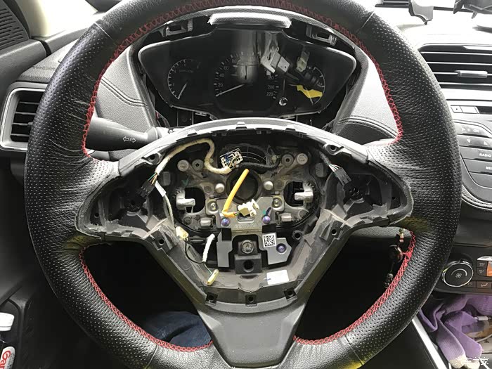 方向盘侧面,修复按键,首先要拆除方向盘下面的外壳,再拔下安全气囊的线,防止意外弹开