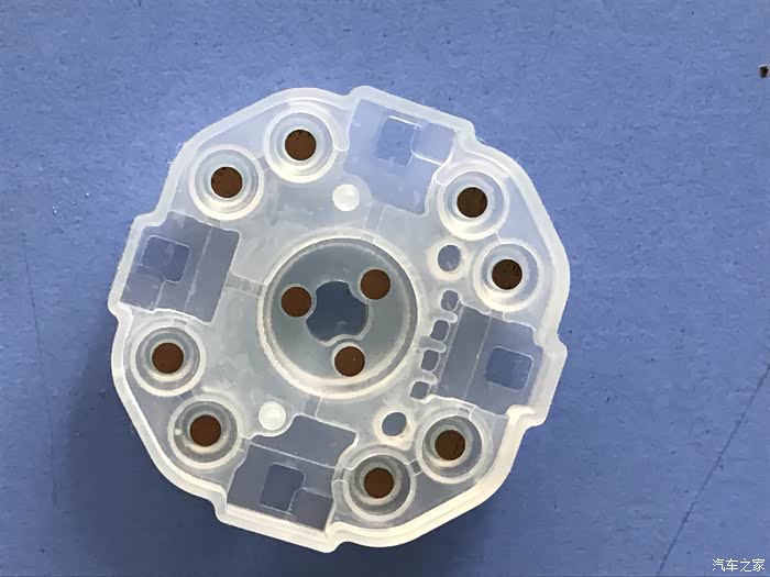 装饰片背面功能键的样子,3个M15的螺丝拆除后就可以更换新的功能键或者拆开修复了