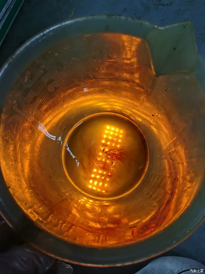 看看,波箱油液位校准之后差不多1.5L的溢出来的变速箱油,看看这个透光性,是不是比之前放出来的1L原车波箱油的透光性好太多了!!!