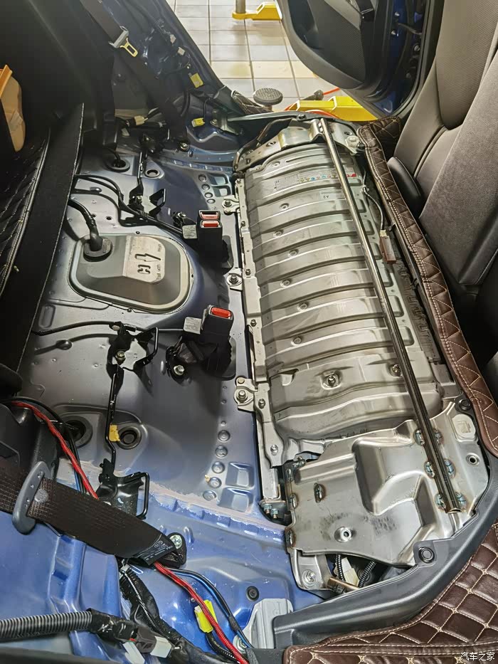 先把后排座椅先拆下来,就看见中间位置有一个四方形的盖,油箱就在下面
