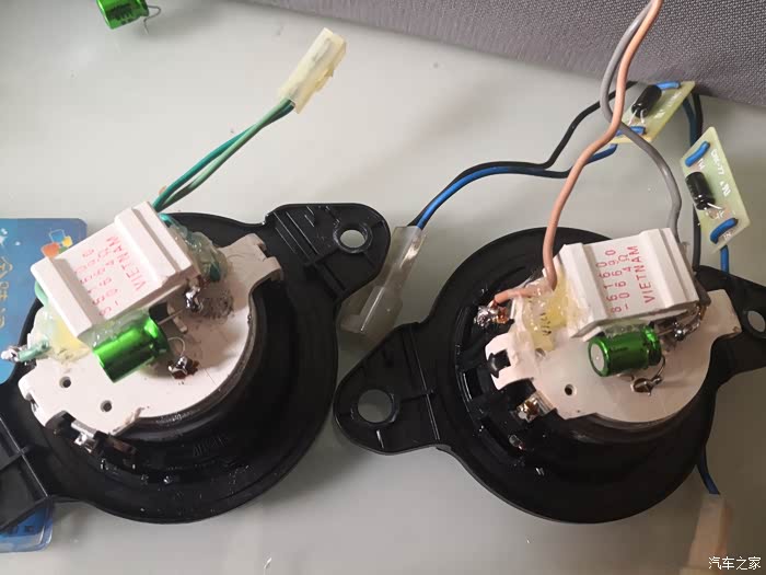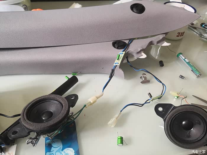 拆A柱就不发图了,如果你连A柱都不会拆也没必要折腾更复杂的了。几个电容就位,开始测试