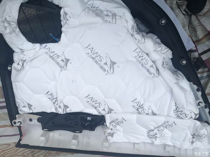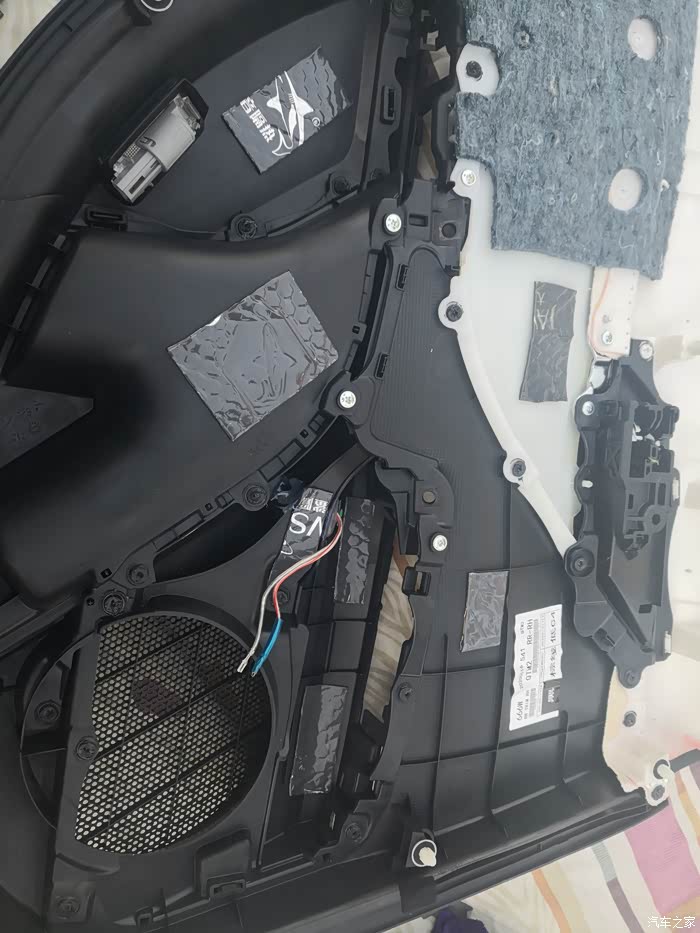 车门饰板和喇叭贴点止震板,吸音棉加上,左前门就完工了。