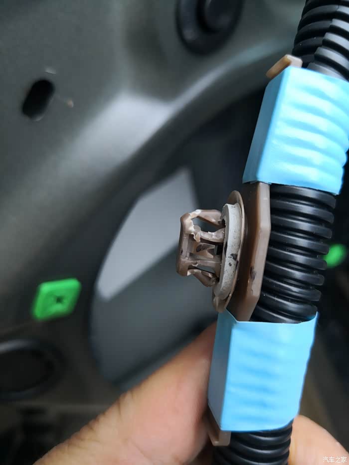 这种车门卡扣可以用手伸进去拆,第一张图我不懂硬翘下来的有点坏了,第二张手伸进去轻松拿出